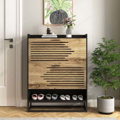 GustoWave 3-Tier Slim Rattan Shoe Storage Cabinet for Entryway Hallway Porch
