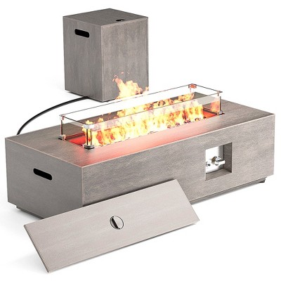 GustoWave 56 in. 3-In-1 Rectangular Propane Fire Pit Table with Stainless Steel Ice Bucket, Glass Wind Guard & Rain Cover