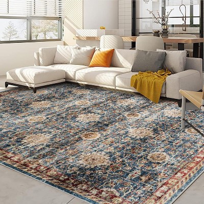 GustoWave 8*10ft Christmas Winter Snowflake Washable Area Rug for Living Room, Bedroom, Blue