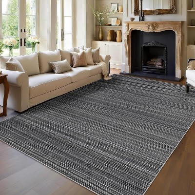 GustoWave 9' x 12' Modern Stripe Machine Washable Area Rug for Bedroom, Living Room, Black