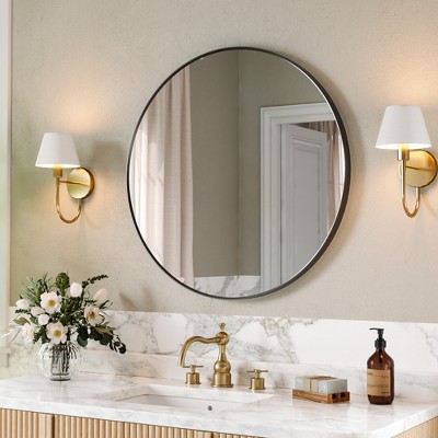 Round Wall Mirror with Metal Frame, 18 to 36 Inch Circle Mirror for Bathroom, Entryway, Living Room Decor – Easy to Install - Black 32''