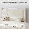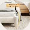 This bed frame features premium boucle upholstery for cloud-like comfort. A reinforced steel frame and wooden slats ensure noise-free, sturdy support. The rounded headboard and padded legs protect from bumps while offering cozy warmth in a soft milk-white shade. Assembly takes under an hour with included instructions. Perfect for modern, cozy bedrooms.