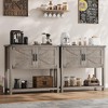 This rustic-industrial coffee bar closet (31.5"W×13.4"D×33.9"H) blends farmhouse charm with modern utility, featuring two magnetic-silent cabinets and a large open shelf for organized storage. Crafted from engineered wood and reinforced metal hardware, its thick legs and base shelf ensure wobble-free stability under daily use. The deep-toned top contrasts elegantly with a white body, accented by black metal handles and corner details. Includes detailed instructions for straightforward assembly—transforming seamlessly into a stylish entry table, bar organizer, or living room console without complicated installation hassles.