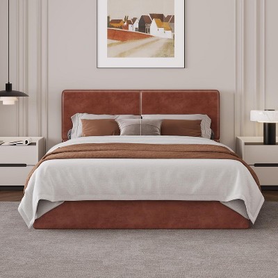 GustoWave Fluted Design Platform Bed Frame with Study Support, Easy Assembly, Brown, Queen