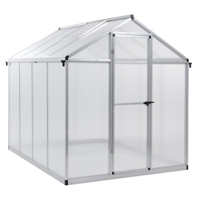 This Weatherproof Greenhouse Features A Reinforced Aluminum Frame And Durable Polycarbonate Panels, Quick And Easy Assembly With Expert Support, Optimized Ventilation With A Lockable Door, Uv-Protective Panels For Healthy Growth, And An Integrated Gutter System For Efficient Rainwater Collection.