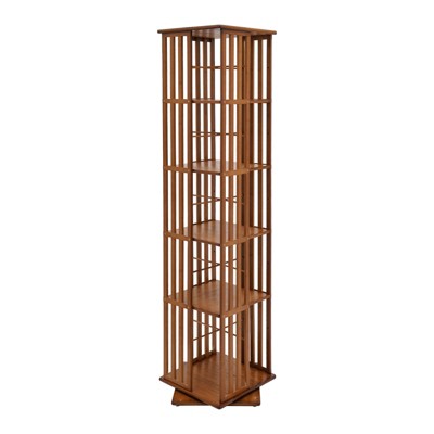 4-Tier 360° Rotating Bookshelf, Spinning Corner Bookcase w/Safety Rails for Living Room, Bedroom, Office, Space-Saving Storage Organizer, White
