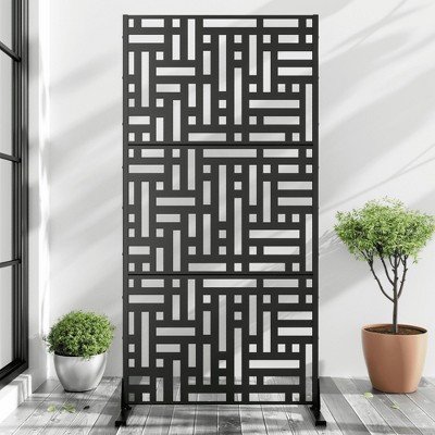 GustoWave Metal Privacy Screen with Stand, 71"X 46" Freestanding Decorative Privacy Panels, Weather-Resistant Rustproof Room Divide, Copper Coin