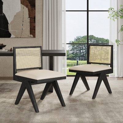 GustoWave Mid-Century Dining Chairs Set of 2, Modern Velvet Upholstered Dining Room Chairs with Rattan Backrest, Black