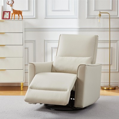 GustoWave Oversized Power Swivel Recliner Chair, Upholstered Faux Leather Nursery Reclining Sofa, Rocker Single Sofa