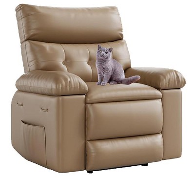 Oversized Faux Leather Power Rocker Swivel Recliner Chair - Heat and Massage, Upholstered Padded Electric Reclining Single Sofa - Khaki