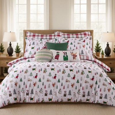 Transform your bedroom for the holidays with this festive duvet cover. Adorned with cheerful prints, it's crafted from soft, luxurious microfiber for ultimate comfort. Practical features include a convenient button closure and eight inner corner ties to keep your duvet securely in place all night. Combining festive style with cozy functionality, it also makes for a wonderfully thoughtful and warm Christmas gift. (inserts not included)