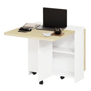 This versatile drop leaf table is perfect for maximizing space in small apartments and tight areas. Designed to fold completely for easy storage in compact corners, it adapts to your needs as a dining table for 4-6 people, an office desk, or an entryway table. Built with a thick, durable tabletop supporting up to 150 pounds, it features a convenient 2-tier storage rack and 6 lockable universal wheels for easy mobility and stability. Simple to assemble and maintain, this multifunctional table combines practicality with space-saving design to help keep your home organized.