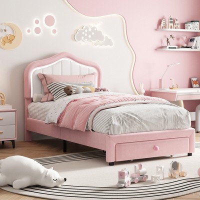 GustoWave Upholstered Twin-XL Bed Frame with Storage Drawer for Kids, Girls, Boys, No Box Spring Needed, Pink
