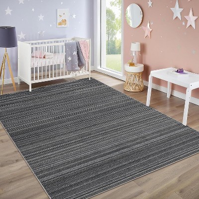 This modern stripe rug features a versatile neutral design that enhances any room with a cozy yet sophisticated atmosphere, while its non-slip backing ensures safety and stability on various floor types for both children and pets. Designed for effortless maintenance, it is washable, vacuum-friendly, and resistant to shedding and fading, making it an ideal and durable accent for active households in spaces like living rooms, bedrooms, and home offices.