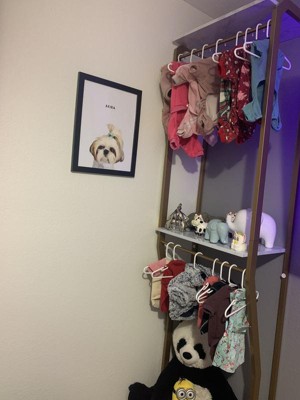 [This review was collected as part of a promotion.] This is very pretty. I used it to hang up my dogs clothes. However, this is hard to assemble. The lock fittings kept falling out, even after they were secured correctly. Some screws had extra metal around them so they wouldn’t work, etc. I even had my dad help me assemble it and he couldn’t get the lock fittings to stay in place either. But overall this is a pretty hanging closet. I just wish it was easier to assemble and made a little better.