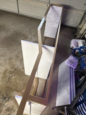 [This review was collected as part of a promotion.] This closet vanity is a really beautiful addition to my closet! I absolutely love the gold and marble look together. It’s tall and holds a lot of stuff. Assembly was a bit difficult considering how heavy it is and you will have to screw it into the wall for it to stand correctly. Other than that it’s perfect and I love it.