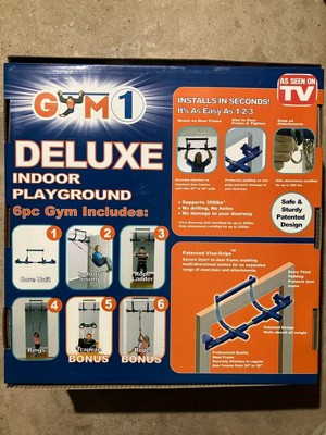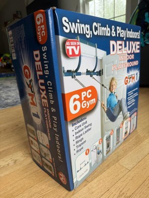 [This review was collected as part of a promotion.] The 6 piece doorway gym is an easy to install and fun indoor “gym” designed for kids. The entire system feels relatively safe and sturdy during use, however I would be concerned with damage to the doorframe after prolonged use. The attachments are easy to swap using a latch system. I think it’s awesome that I can have a swing inside my home! Overall I would recommend this indoor gym set to people with small children.