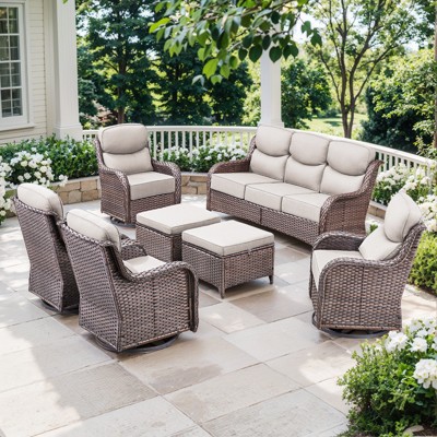 Gymojoy 4 Pieces Outdoor 6 Inch Sofa Swivel Chair with Fire Pit Table