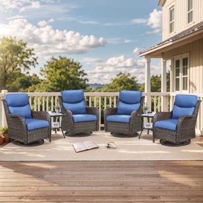 - ¡¾OUTDOOR SWIVEL ROCKING CHAIR¡¿: Our wicker outdoor swivel chair focuses on providing a superior comfort experience. 22Inch seating depth and 22Inch high back design with 5"" Inch high resilience cushions provide you with unrivalled outdoor seating