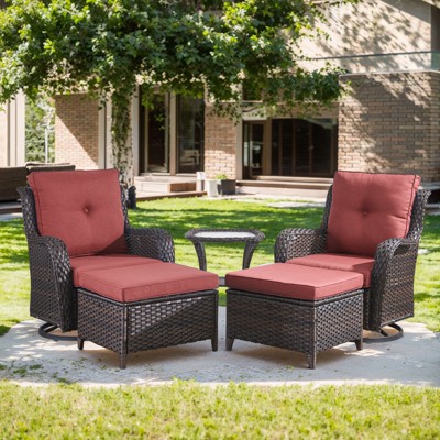 Gymojoy 5 Pieces Outdoor Swivel Chairs Wicker Glider Patio Chair w/Ottomans 5" Extra Thick Cushions