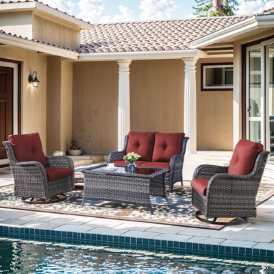 - Deep seats and 4-inch thick sponge-padded cushions for added comfort