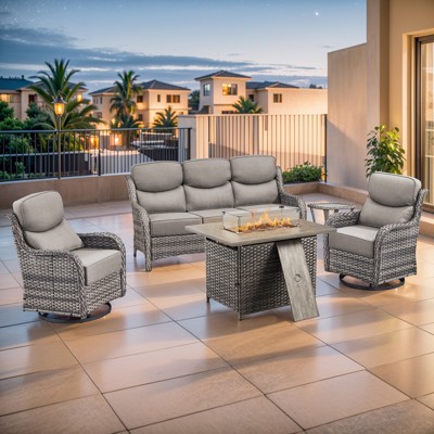 Gymojoy 6 Pieces Outdoor 6 Inch Sofa Swivel Chair Ottoman with Fire Pit Table