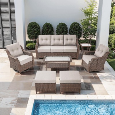 Gymojoy Outdoor Sofa Rocking Chair Side Table with Ottomans Patio Funiture