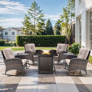 Gymojoy 7 Pieces Rocker Chair with Propane Fire Pit Table