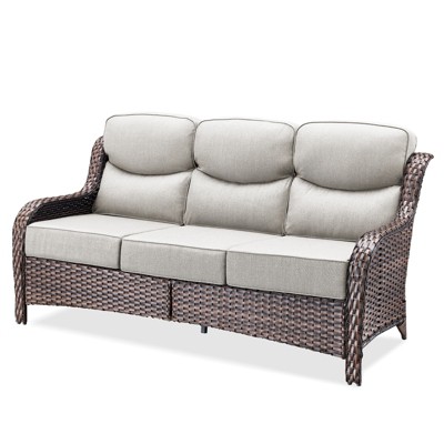 Gymojoy Outdoor 3-Seat Sofa PE Wicker Sofa Rattan Patio Sofa Couch For Garden