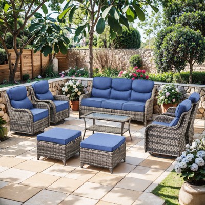 Gymojoy Outdoor Patio Sofa Ottoman with Swivel Chairs 3-Seat Sofa Glider Chairs Ottoman for Deck Porch Backyard