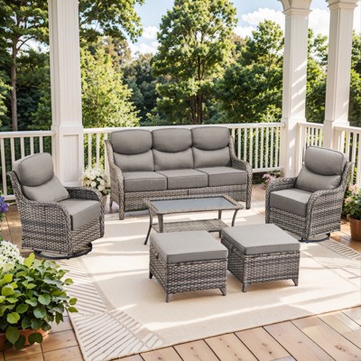 Gymojoy Outdoor Patio Sofa Ottoman with Swivel Chairs 3-Seat Sofa Glider Chairs Ottoman for Deck Porch Backyard