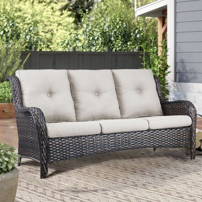 Gymojoy Outdoor PE Wicker Sofa Loveseat Sofa with Soft Cushion