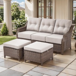- Quality and Maintain: This 3-seater couch is made of an all-weather HDPE wicker and rust-resistant steel frame, which ensures long-term use. Breathable 250G polyester fabric is water-repellent, UV-resistant, easy to replace, and washable.