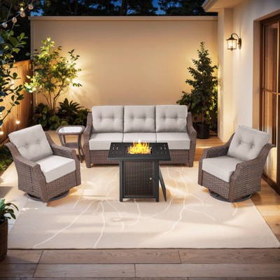 Gymojoy Outdoor Sofa Table with Swivel Chairs Gilder Chairs Patio Funiture Set