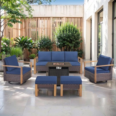 Gymojoy Patio Conversation Set 5-Pieces Wicker Outdoor Furniture Conversation Set with 3-Seat Sofa, 2 Swivel Rocker Chairs, 2 Ottomans