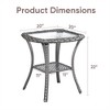 Classic Brown/Grey/ Light Grey/Yellow rattan end table can be paired with most of the patio furniture set for your indoor or outdoor space.Suitable for most classic rattan seats, armchairs, chaises, loveseats or converstation sets in warm tone. Features: HIGH QUALITY MATERIAL - Build from handwoven all-weather resin wicker, powder-coated steel frame and 5mm tempered glass table top, this side table merges high style with low maintenance. MULTIPURPOSE TABLE - This outdoor side tables can be used as a flower stand, side table, coffee table and more. Ideal size to complement your patio conversation chairs, chaise lounges and bistro set. Stay bright and attractive in your outdoor space. STORAGE & STURDY - This cafe table with storage features 2-tiers,the lower shelf provides additional storage space for sundries.The glass table top add extra support for daily use. EASY TO ASSEMBLE - The small outdoor table comes with clear assemble instruction and all needed tools, easy to assemble by one person. Durable Tempered Glass Top: Resistant to scratches and easy to maintain, ensuring long-lasting use. Premium Wicker Material: Weather-resistant and stylish, adding a touch of elegance to your patio. Convenient Storage Space: Keep your patio organized with ample room for essentials. Crafted with Care: Meticulously woven for a sophisticated look that enhances your outdoor space. Versatile Design: Perfect for relaxing or entertaining, creating a cozy patio retreat. Dimensions: Side Table: 20"x20"x22"H. 10.5LBS What's in the box? 1*Side table 1*Hardware