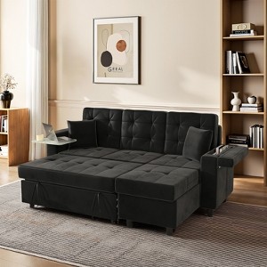 - ¡¾All-in-One Functionality¡¿: This multifunctional piece easily switches between sofa and bed modes. Thoughtfully designed with integrated cup holders, a hidden table, and a phone stand, it enhances convenience and functionality, fitting seamlessly