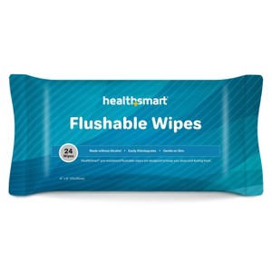 HealthSmart Flushable Wipes, Gentle on Sensitive Skin, Easily Disintegrates, Alcohol-Free Wipes for Adults or Babies, FSA & HSA Eligible, 24 Count