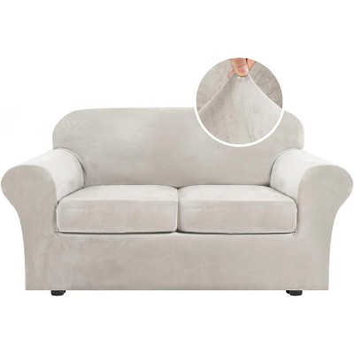 H.Versailtex Stretch Velvet Sofa Covers for Cushion Couch Covers Sofa Slipcovers Furniture Protector OATMEAL Loveseat