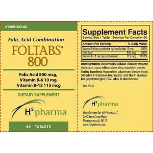H2 Pharma Foltabs 800 Folic Acid Supplement for Prenatal, Heart & Cellular Health Support, 60 Tablets