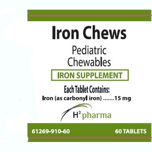 H2 Pharma Iron Chews 15 mg Tasty Chewable Tablets for Gentle Iron Support, Energy, and Red Blood Cell Health 60 Count