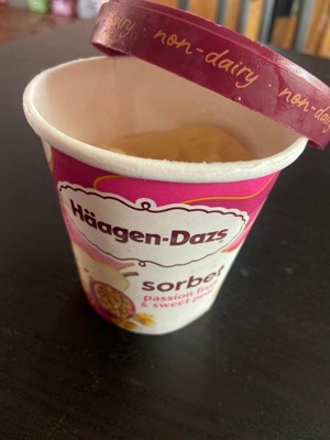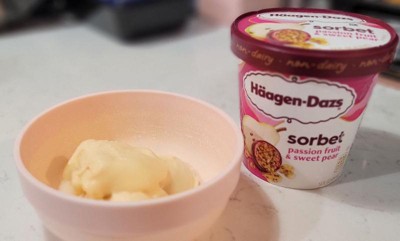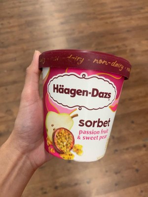 Been a Häagen-Dazs fan since the 1980's & was excited to see a new flavor. I still dream about some flavors of the past, Macadamia Nut Brittle, oh how I do miss you & some of your other friends. Back to today, the Passion Fruit Pear Sorbet is a delightful flavor of passion fruit. I notice the pear at the front, followed by the sharpness of the passion fruit. It's very smooth, with a crisp, clean flavor. I find it a bit soft in texture. In fact, I thought my freezer was on the fritz, but everything else is okay. In summary, like all Häagen-Dazs products they always nail the flavors & don't add unnecessary ingredients to dull or dilute the taste. It's very good & spot on passion fruit/pear. I'm sure the softness will grow on me, just surprised me. I suggest you try it & give it a go. I'll certainly purchase again & so happy Target has the new flavors as not seen them elsewhere. Well done both Target & Häagen-Dazs!