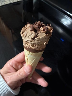 [This review was collected as part of a promotion.] I received this for free in exchange for my honest review. The ice cream itself was absolutely on point—rich, creamy, and full of chocolate flavor. The waffle cone was perfectly crispy with a buttery taste, and the highlight for me was the fudge-filled bottom, which was decadent and delicious. The only reason I’m giving it 4 stars instead of 5 is due to the misleading presentation. The packaging shows a cone filled to the brim, but in reality, the ice cream started about an inch below the top of the cone. I was a bit disappointed by the smaller-than-expected size when I opened it. That said, the taste more than made up for it. Overall, it’s a great ice cream novelty, and I will definitely be buying it again.