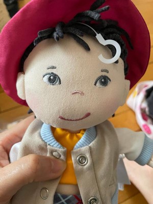 [This review was collected as part of a promotion.] I received this product from Influenster for my review. This doll is adorable! She has removable clothes and is stuffed nice and firm. The majority of her fabric is great quality, though the skin parts do gather lint, but it is easy to clean. Her hair was tucked inside her hat upon opening and needs to be straightened out. The hair strands are a bit uneven, but she's beautiful overall!