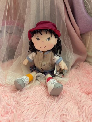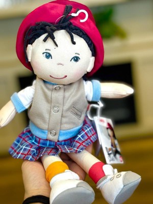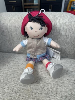 HABA 12" Soft Doll Yuki with Black Hair, Embroidered Face, Stylish Bucket Hat and Clothes - Washable Toddler Baby Doll for 18 Months+