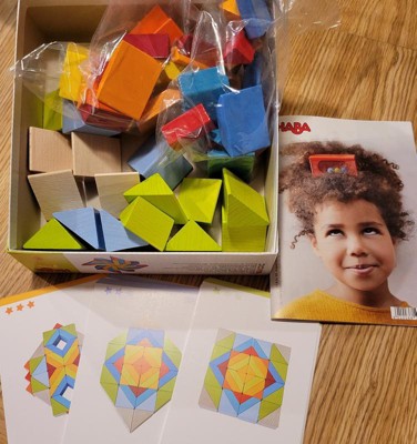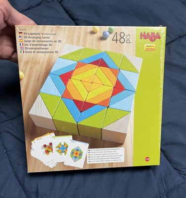 [This review was collected as part of a promotion.] I received 3D Arranging Game Mosaic Game by HABA. This game is actually for all different ages. As long as they can follow a pattern. Its fun and challenging at same the time. It keeps you occupied with all different levels of difficulty. It is great for kids to learn geometric shapes. The blocks are really nice in color which makes it look really cool when complete.The blocks are also made really well, its not cheaply made at all.