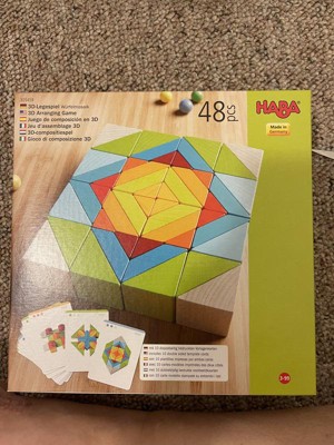 [This review was collected as part of a promotion.] I love the Haba 3D arranging game. My toddler and I love putting all the wood blocks together to make different shapes. The game comes with different cards which has pictures to help you design it. I absolutely recommend this product! Great for all ages 3 and older!