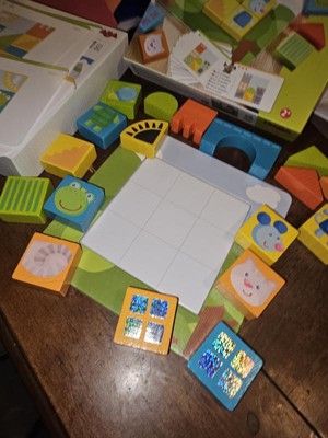 [This review was collected as part of a promotion.] Fun learning game for the little ones. First of all, it has colorful wooden blocks. Can introduce baby to different colors and shapes. As they get older, they can use the blocks to create different placements and designs. When they get to age 2+ they canbegin to analyze how to copy the pictures to place the appropriate blocks on the board. Fun to use and can be used in so many different ways for different ages.