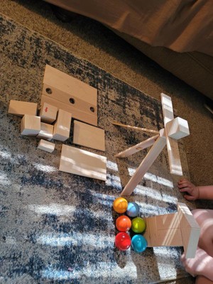 [This review was collected as part of a promotion.] This is a great starter or add-on set of building blocks. Lots of various shapes to choose from and they all stack very well. Well made with no splintery areas. Easy for smaller hands to pick up and play with. Hours of fun building and rebuilding play.