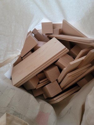 [This review was collected as part of a promotion.] This set of wooden building blocks are very well made. They are smooth, sturdy solid wood. They will last forever. The shapes are different than most building block sets which the kids love. And they come with a tote bag to keep them in which is great.
